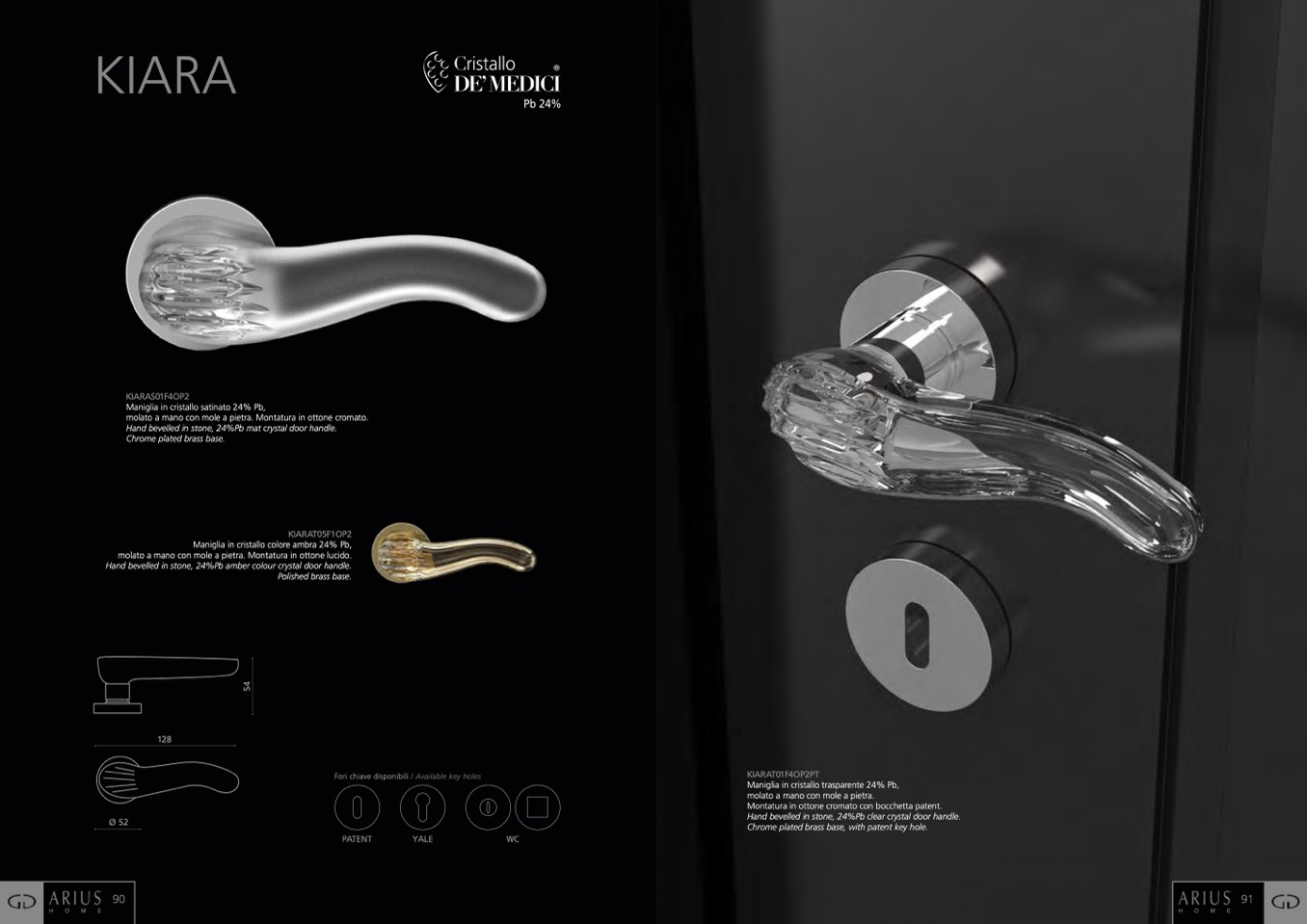 Maniglia in cristallo satinato 24% Pb,