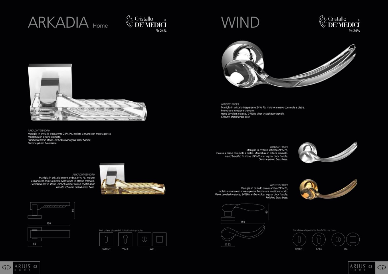 Fori chiave disponibili / Available key holes
