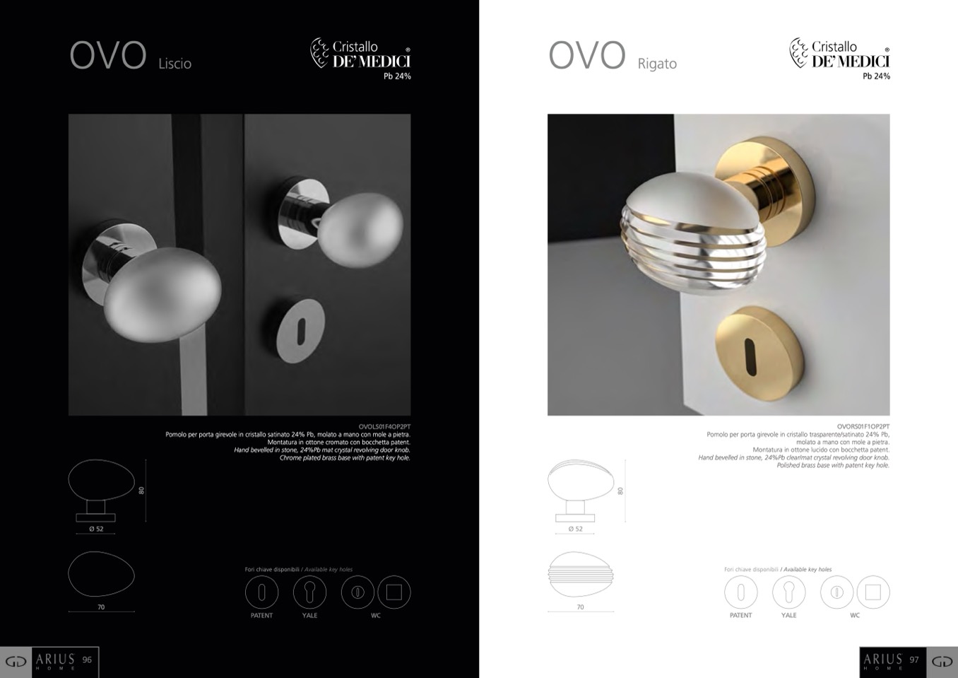 Pomolo per porta girevole in cristallo trasparente/satinato 24% Pb,