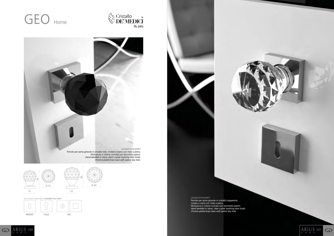 Pomolo per porta girevole in cristallo nero, molato a mano con mole a pietra.
