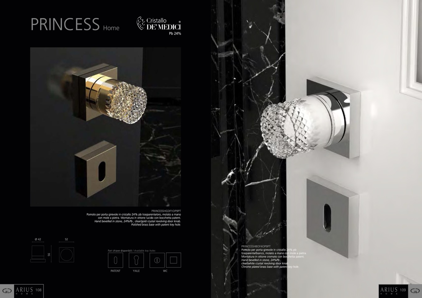 Pomolo per porta girevole in cristallo 24% pb