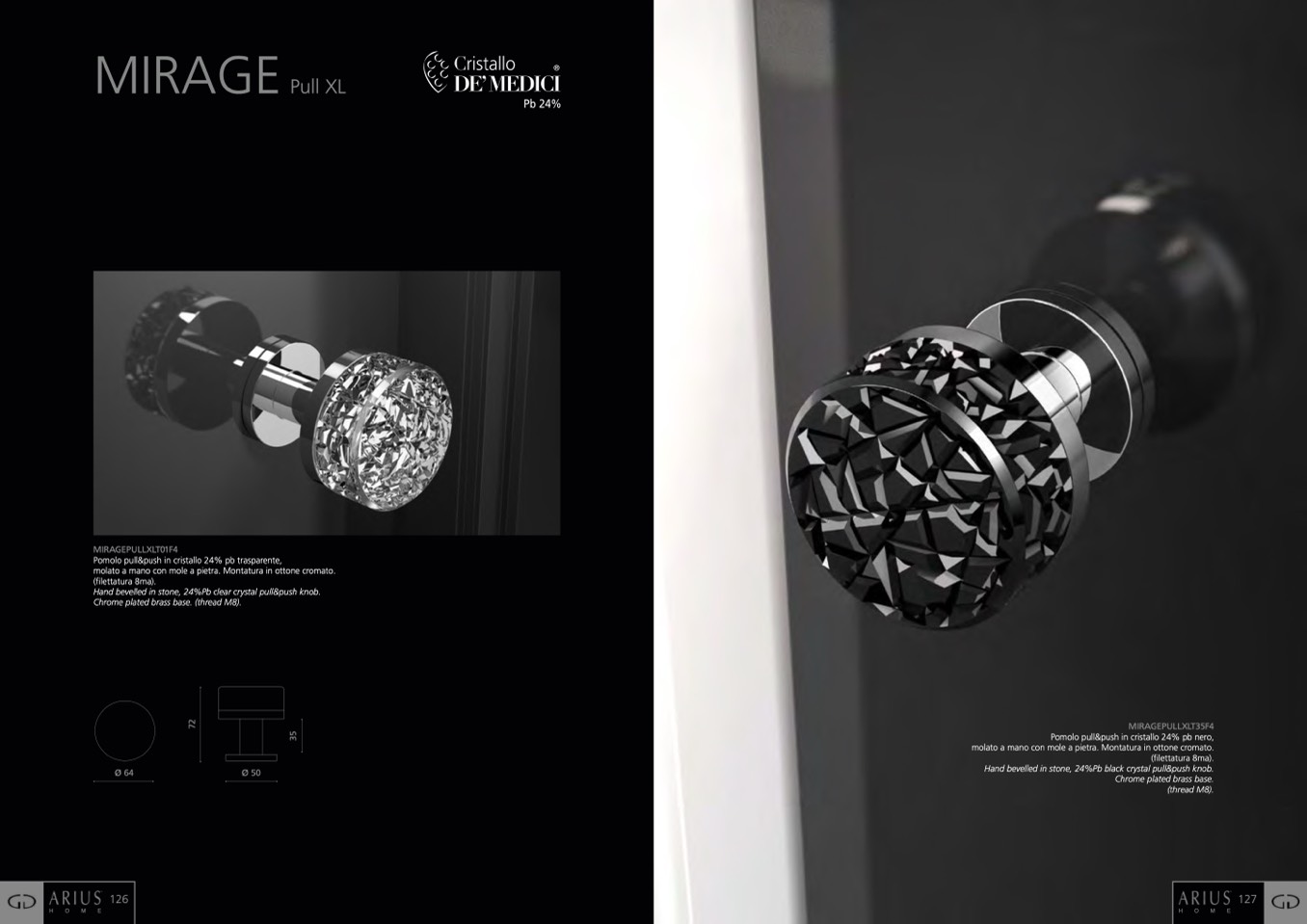 Hand bevelled in stone, 24%Pb clear crystal pull&push knob.