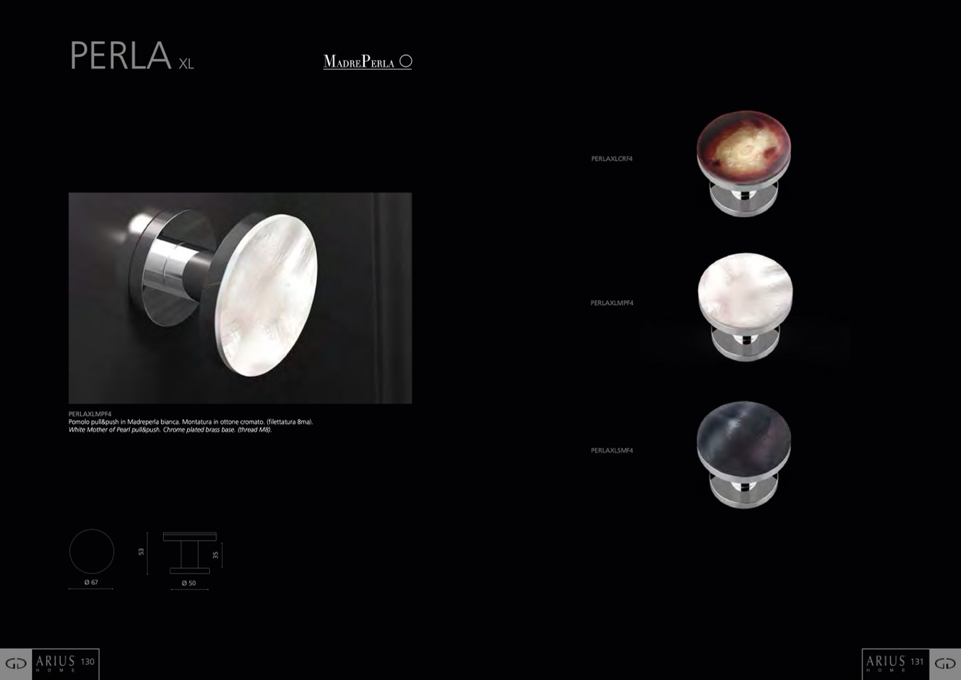 White Mother of Pearl pull&push. Chrome plated brass base. (thread M8).