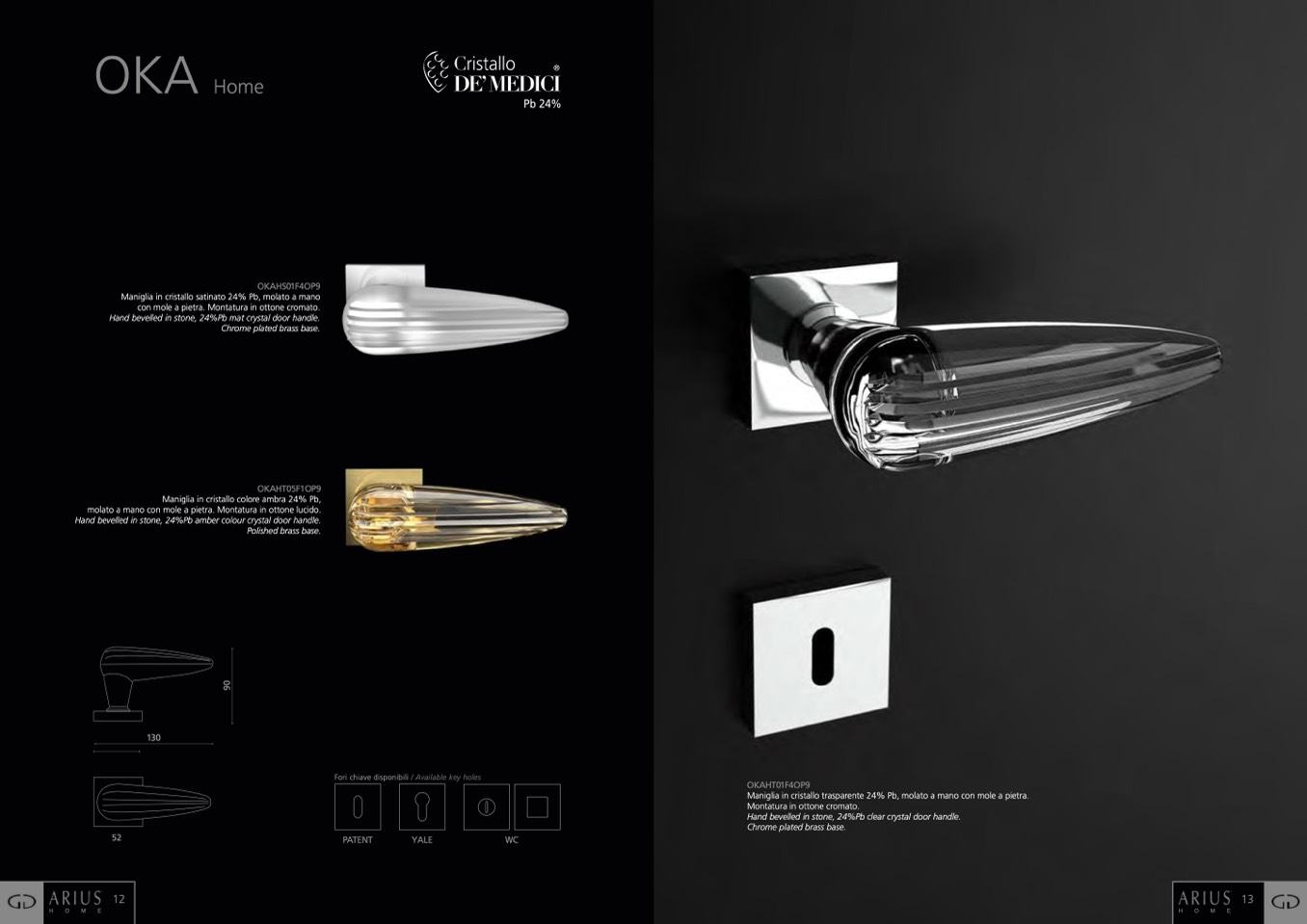 Maniglia in cristallo satinato 24% Pb, molato a mano