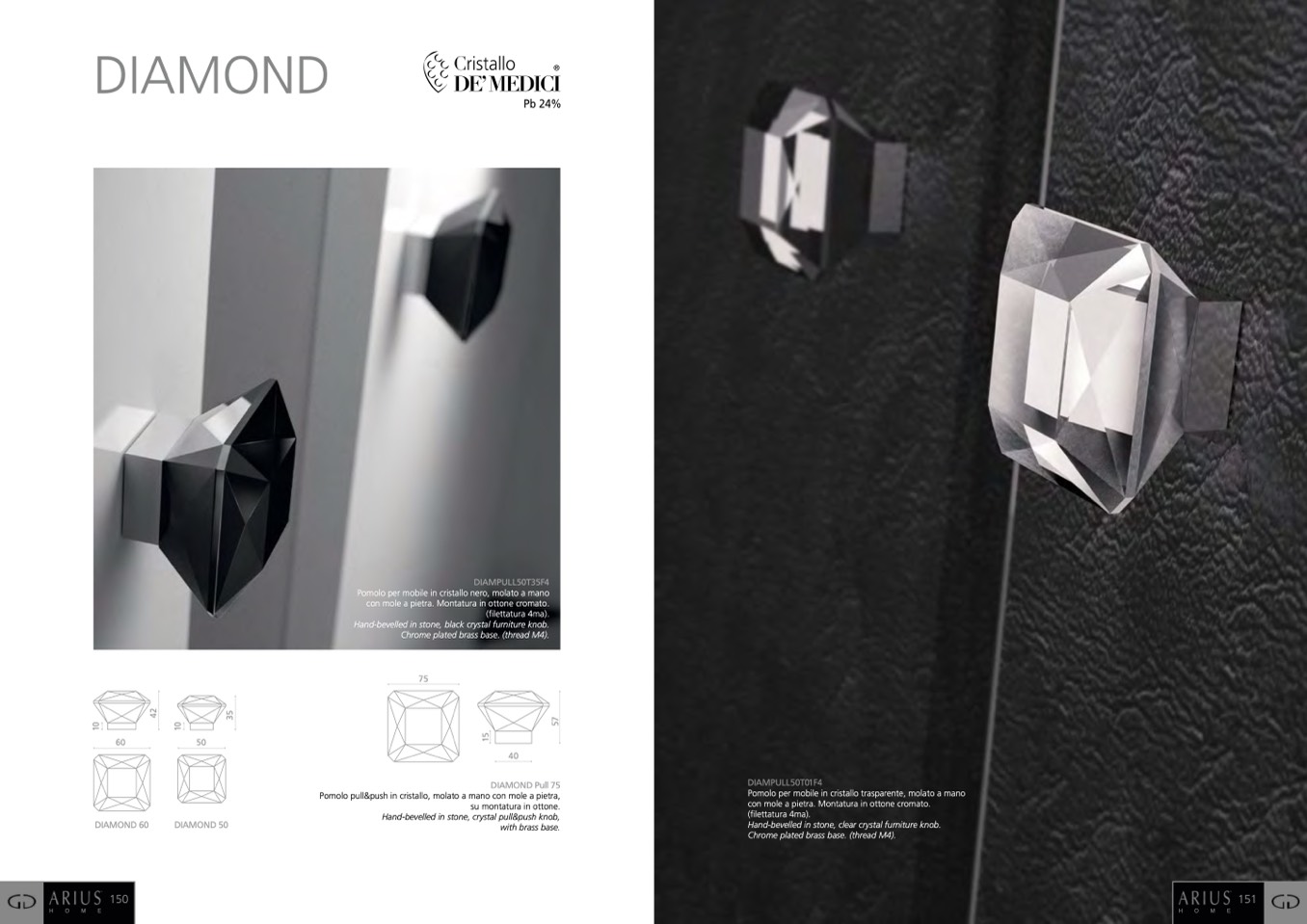 Pomolo pull&push in cristallo, molato a mano con mole a pietra,