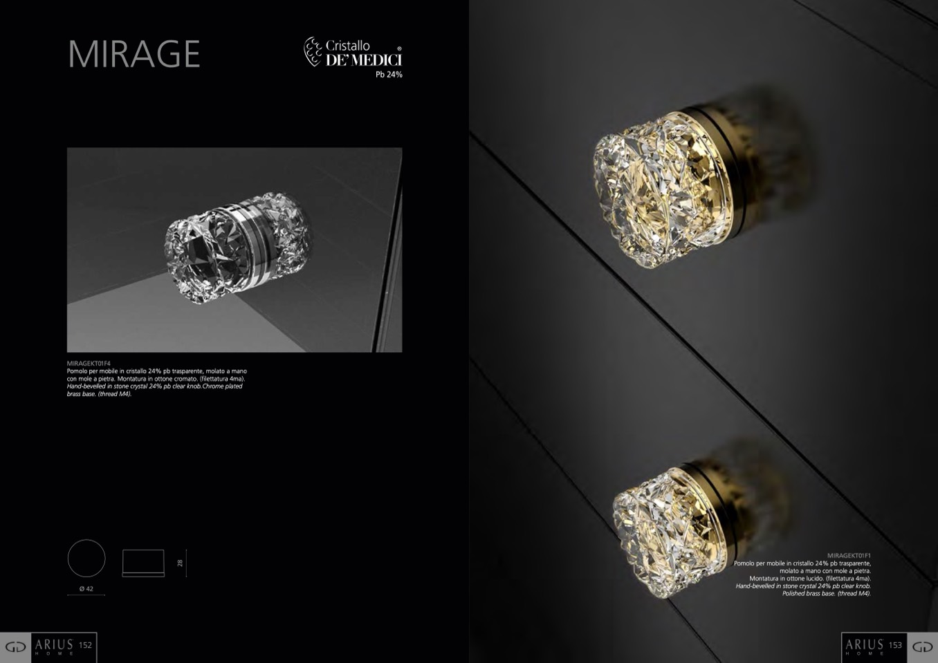 Hand-bevelled in stone crystal 24% pb clear knob.Chrome plated