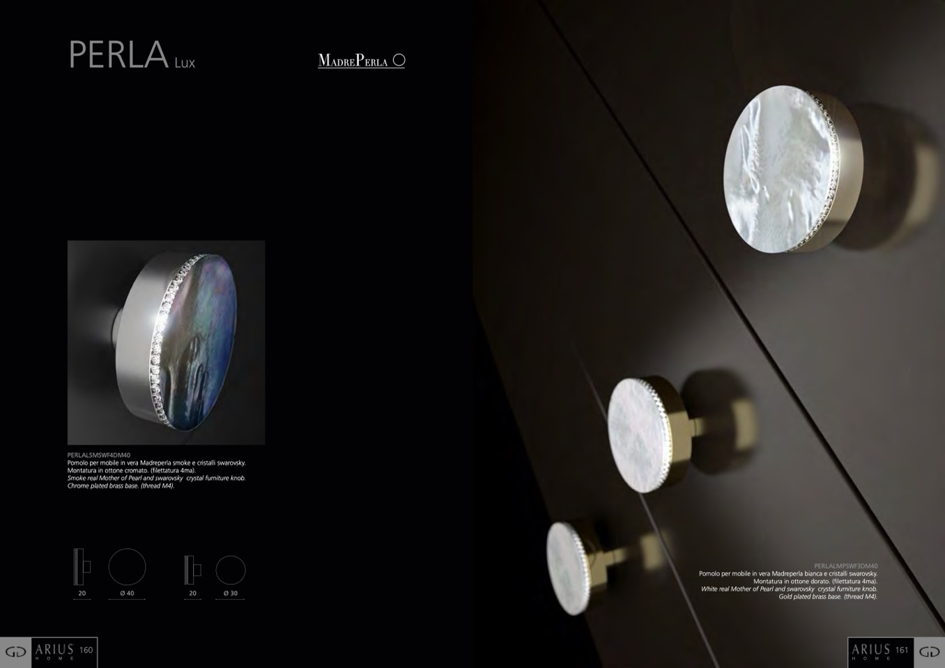 Pomolo per mobile in vera Madreperla bianca e cristalli swarovsky.