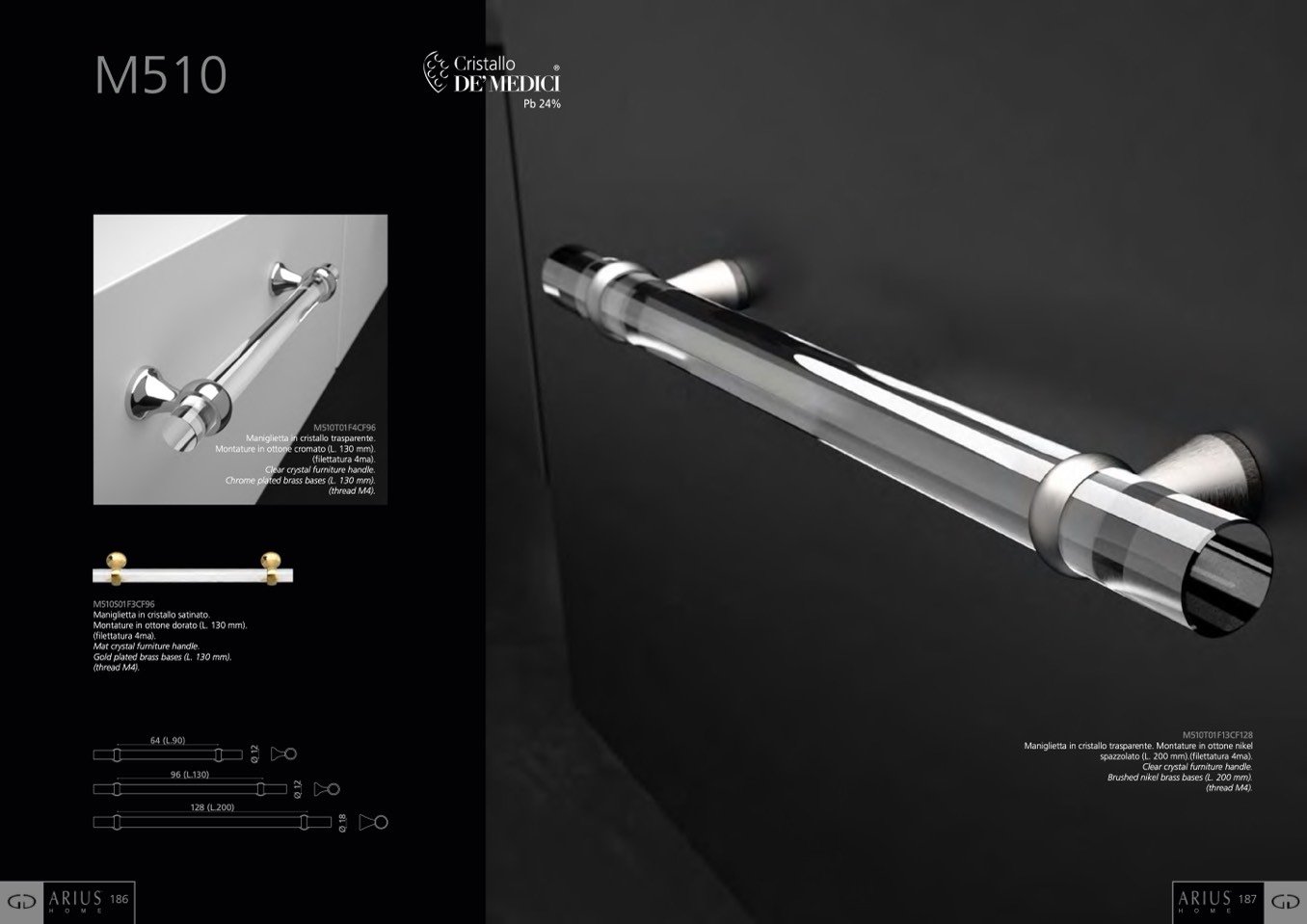 Maniglietta in cristallo trasparente. Montature in ottone nikel