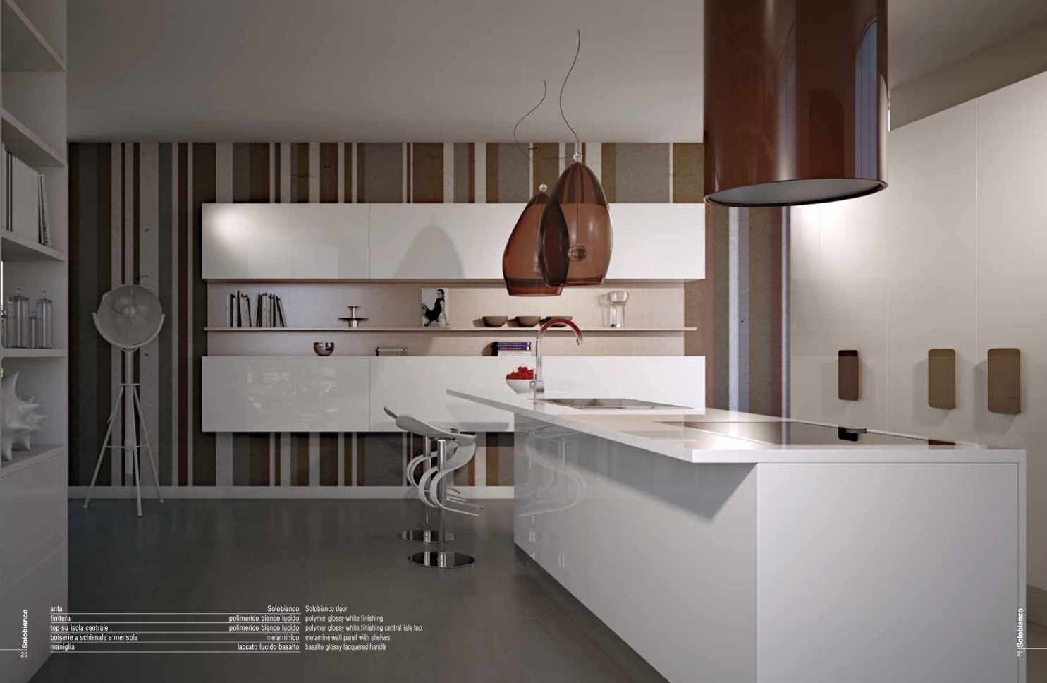 polymer glossy white finishing central isle top