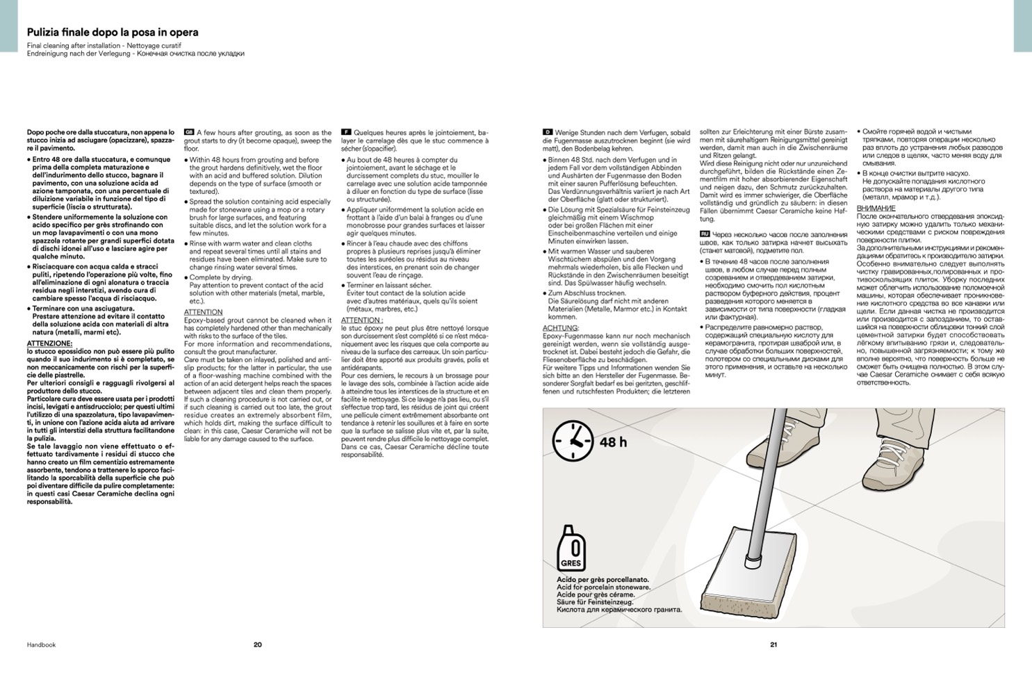 the grout hardens definitively, wet the floor