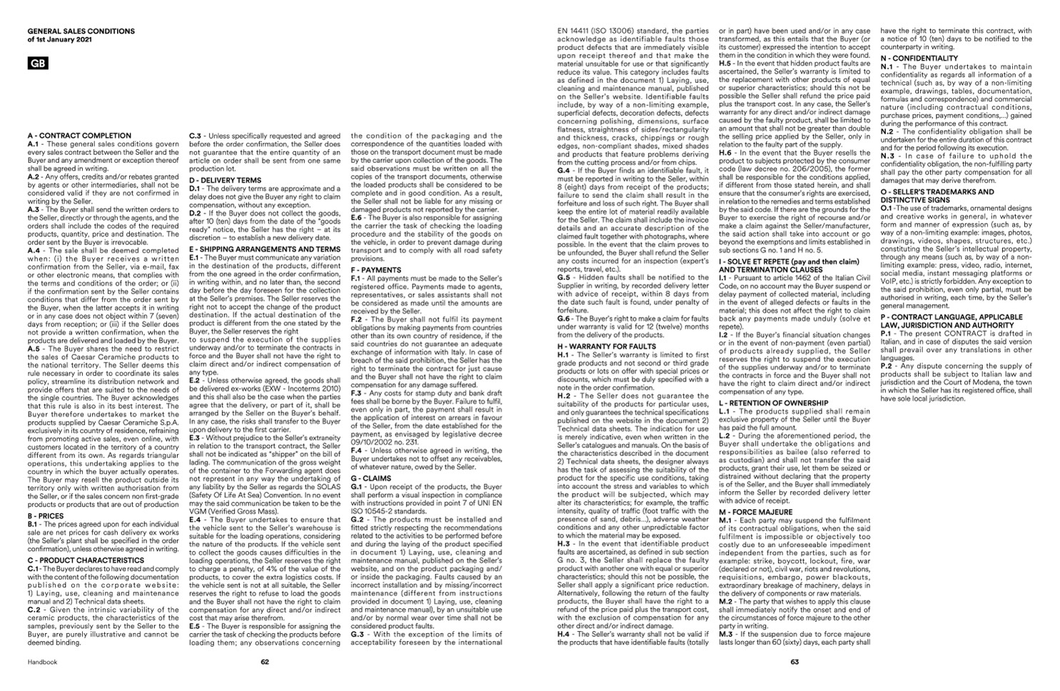 I.1 - Pursuant to article 1462 of the Italian Civil