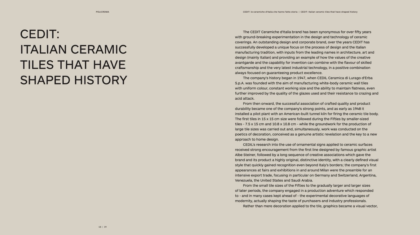 The CEDIT Ceramiche d’Italia brand has been synonymous for over fifty years