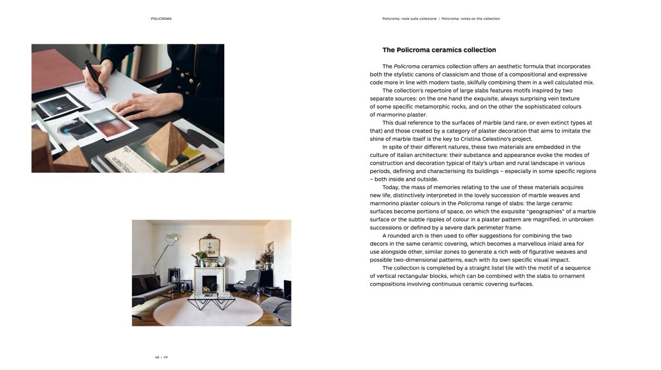 The collection’s repertoire of large slabs features motifs inspired by two