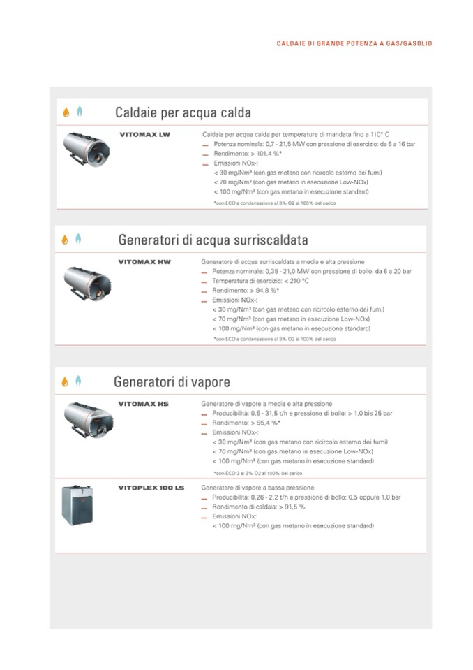 Producibilità: 0,5 - 31,5 t/h e pressione di bollo: > 1,0 bis 25 bar