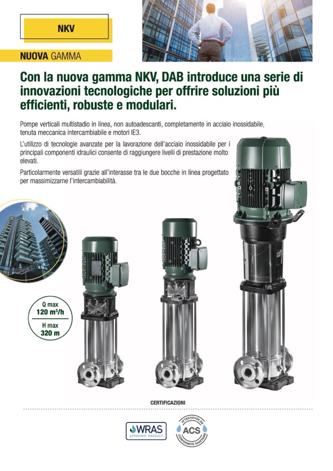 Pompe verticali multistadio in linea, non autoadescanti, completamente in acciaio inossidabile,