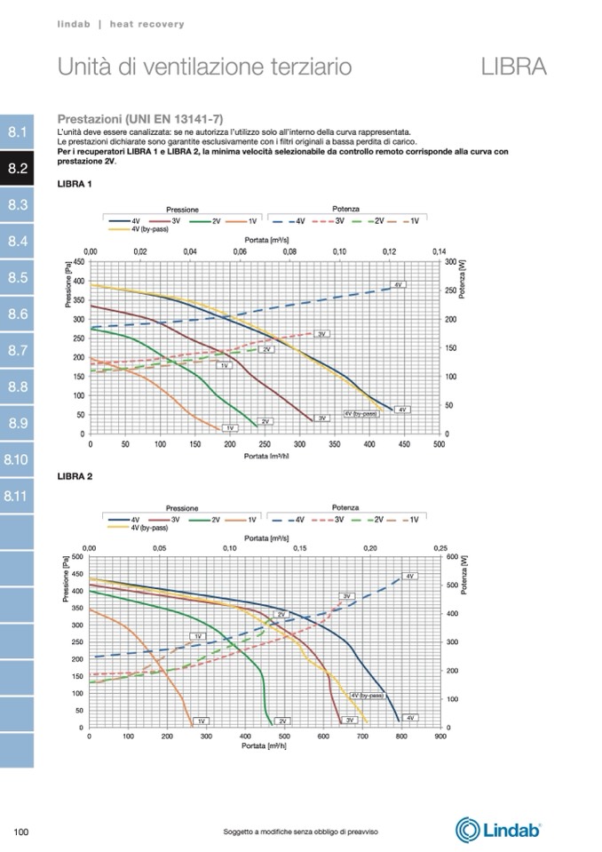 Per i recuperatori LIBRA 1 e LIBRA 2, la minima velocità selezionabile da controllo remoto corrisponde alla curva con