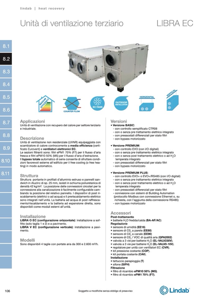 LIBRA V EC (configurazione verticale): installazione a pavi-