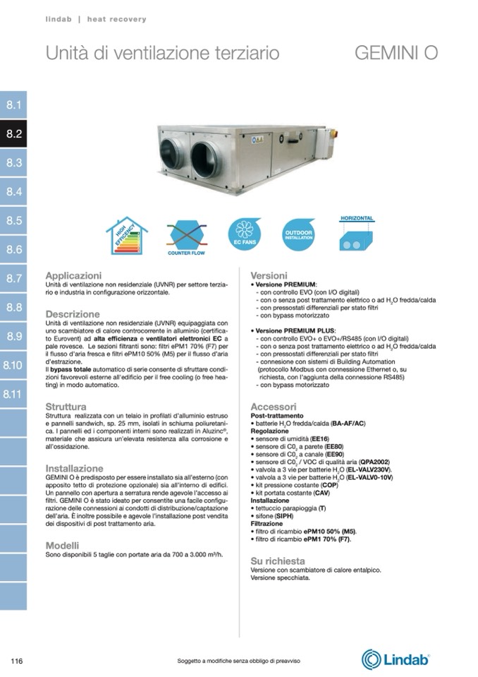 to Eurovent) ad alta efficienza e ventilatori elettronici EC a