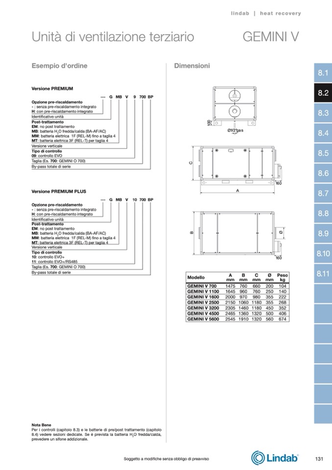 Per i controlli (capitolo 8.3) e le batterie di pre/post trattamento (capitolo
