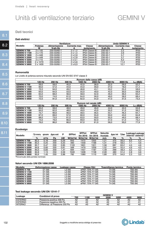 Valori secondo UNI EN 1886:2008