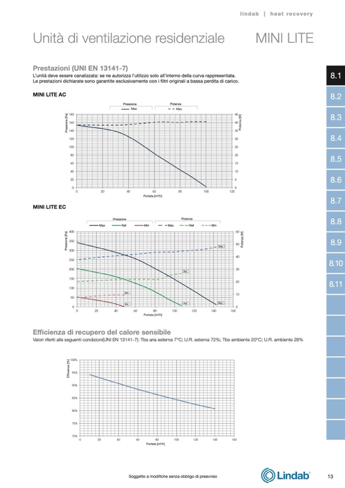 Valori riferiti alle seguenti condizioni(UNI EN 13141-7): Tbs aria esterna 7°C; U.R. esterna 72%; Tbs ambiente 20°C; U.R. ambiente 28%