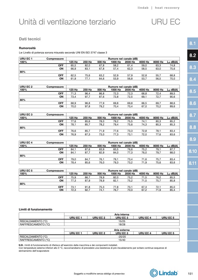 Lw Livello di potenza sonora misurato secondo UNI EN ISO 3747 classe 3