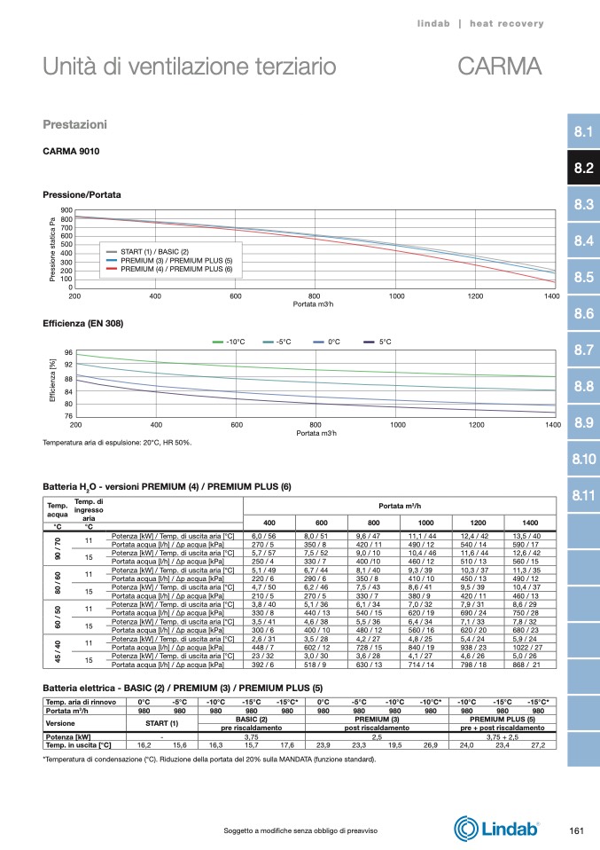 Temperatura aria di espulsione: 20°C, HR 50%.