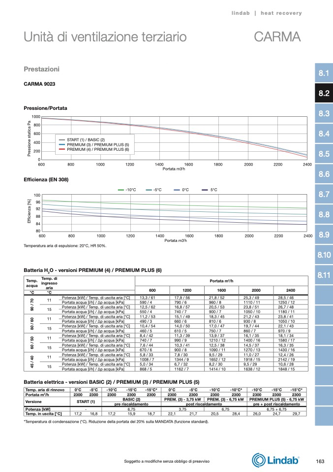 *Temperatura di condensazione (°C). Riduzione della portata del 20% sulla MANDATA (funzione standard).
