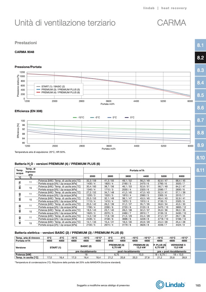 Temperatura aria di espulsione: 20°C, HR 50%.