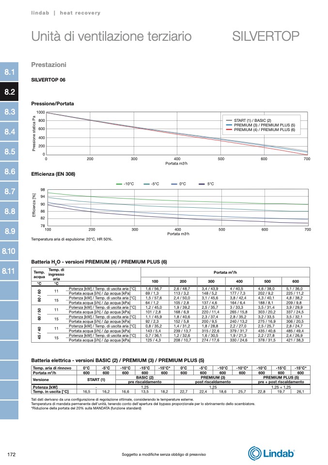 Temperatura aria di espulsione: 20°C, HR 50%.