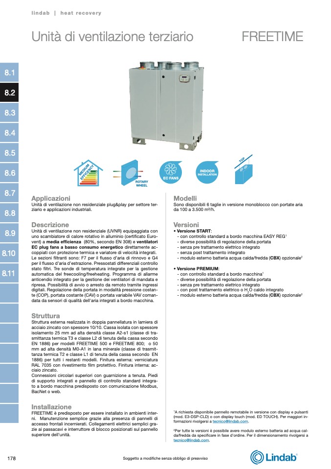 vent) a media efficienza (80%, secondo EN 308) e ventilatori
