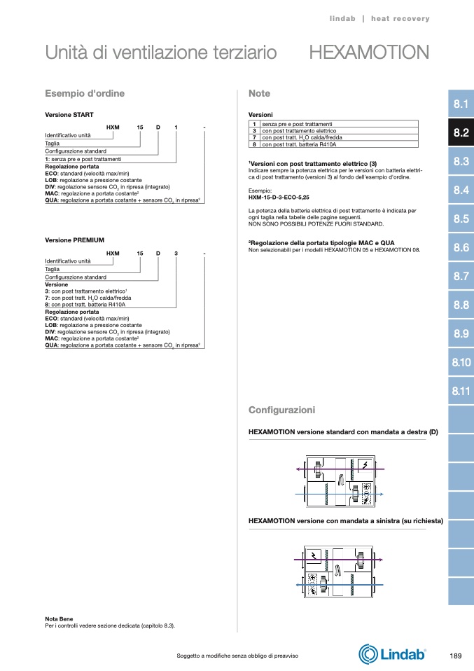 Non selezionabili per i modelli HEXAMOTION 05 e HEXAMOTION 08.