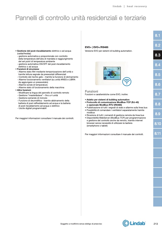 • Disponibilità WebServer (ModBus-TCP) per programmazione
