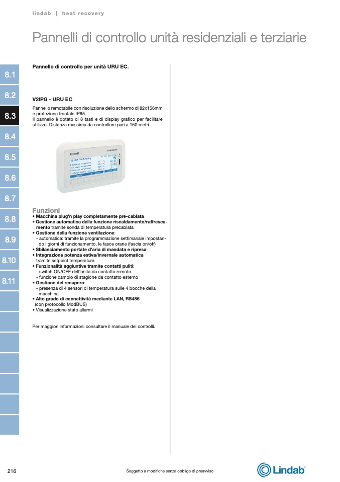 Il pannello è dotato di 8 tasti e di display grafico per facilitare
