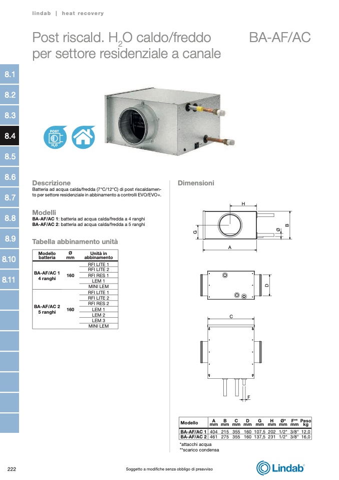 BA-AF/AC 1: batteria ad acqua calda/fredda a 4 ranghi