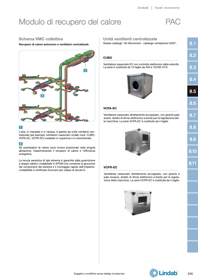 VCPA-EC, VCPR-EC) installate in copertura o in seminterrato.