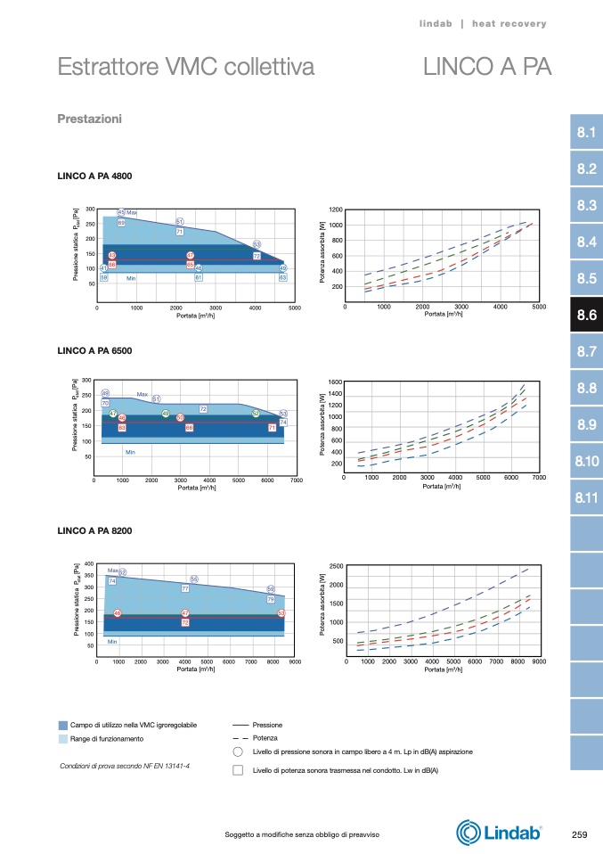 Livello di potenza sonora trasmessa nel condotto. Lw in dB(A)