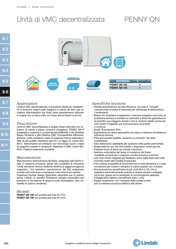 cupero di calore, a basso consumo energetico. PENNY QN È