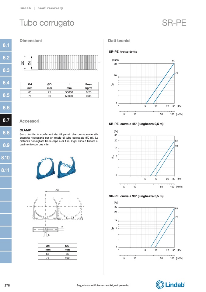 SR-PE, curva a 90° (lunghezza 0,5 m)