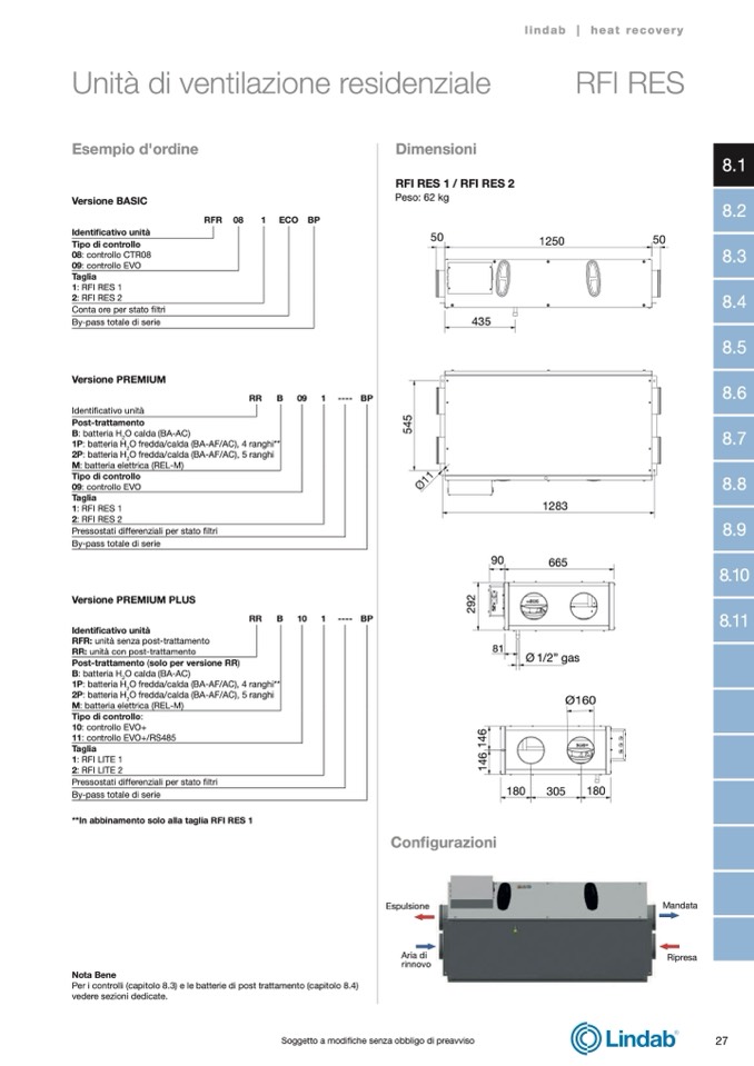Per i controlli (capitolo 8.3) e le batterie di post trattamento (capitolo 8.4)