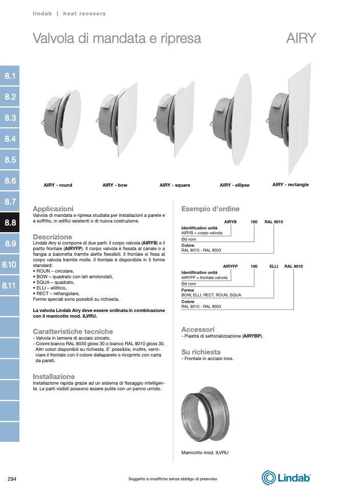 La valvola Lindab Airy deve essere ordinata in combinazione
