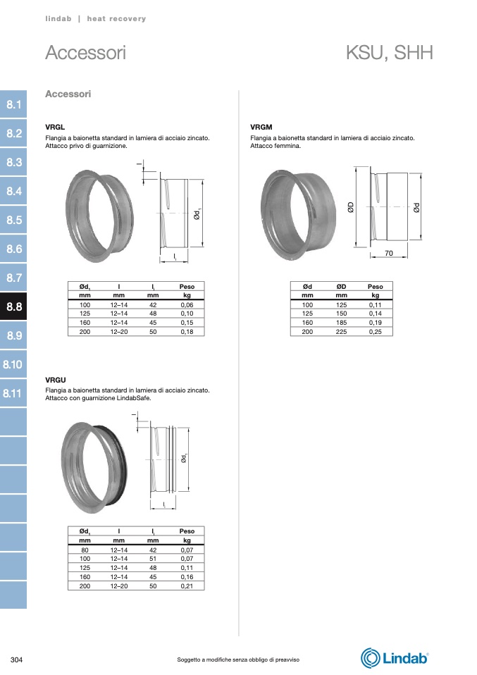 Flangia a baionetta standard in lamiera di acciaio zincato.