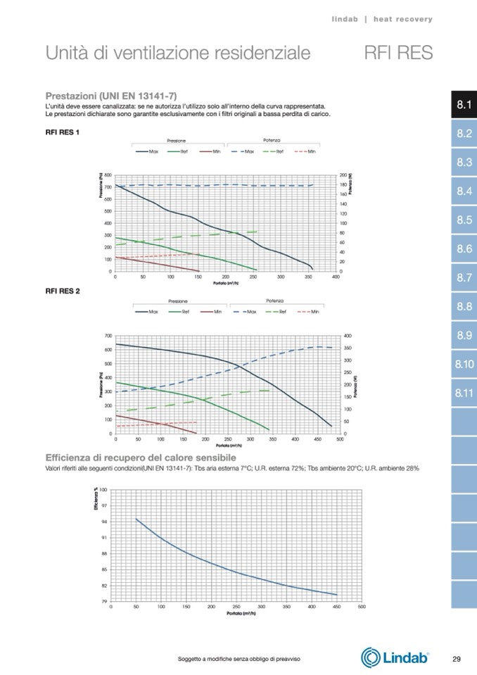 Valori riferiti alle seguenti condizioni(UNI EN 13141-7): Tbs aria esterna 7°C; U.R. esterna 72%; Tbs ambiente 20°C; U.R. ambiente 28%