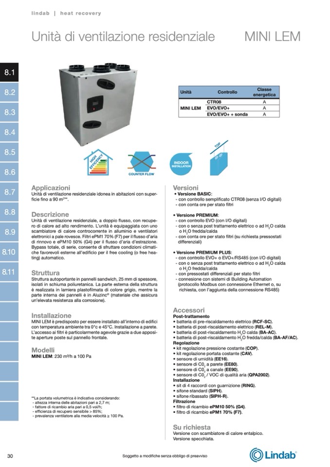 - prevalenza ventilatore alla media velocità ≥ 100 Pa.