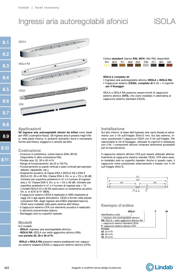 - ISOLA: ingresso aria autoregolabile afonico;
