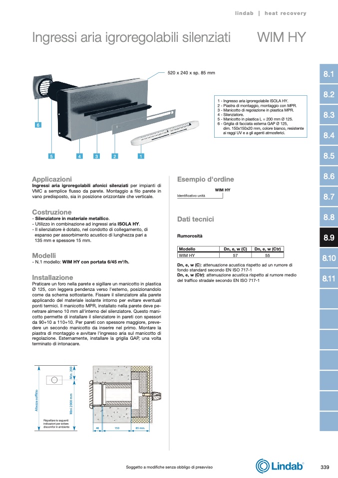 1 - Ingresso aria igroregolabile ISOLA HY.