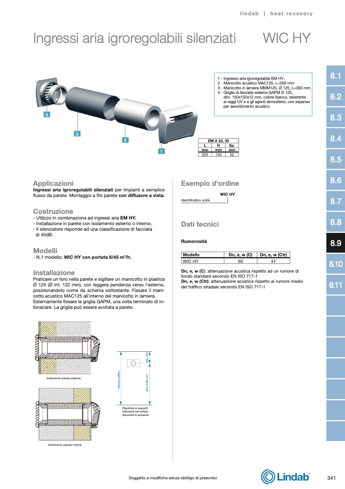 Ingressi aria igroregolabili silenziati per impianti a semplice