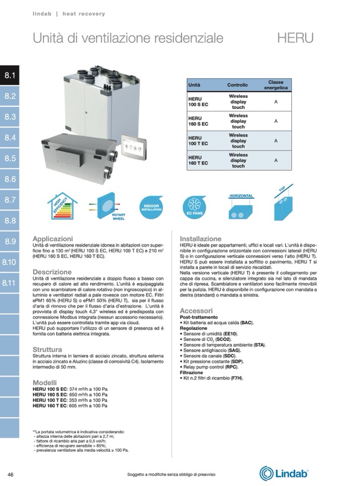 HERU è ideale per appartamenti, uffici e locali vari. L'unità è dispo-