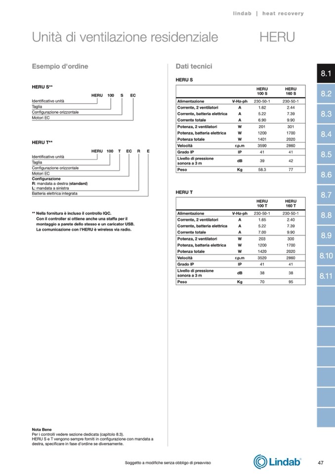 HERU S e T vengono sempre forniti in con
