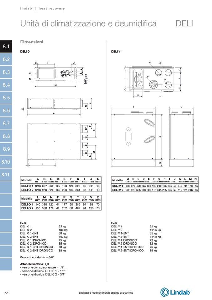 - versione idronica, DELI O 2 = 3/4"